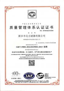 北方濾器ISO質(zhì)量管理體系認(rèn)證證書中文